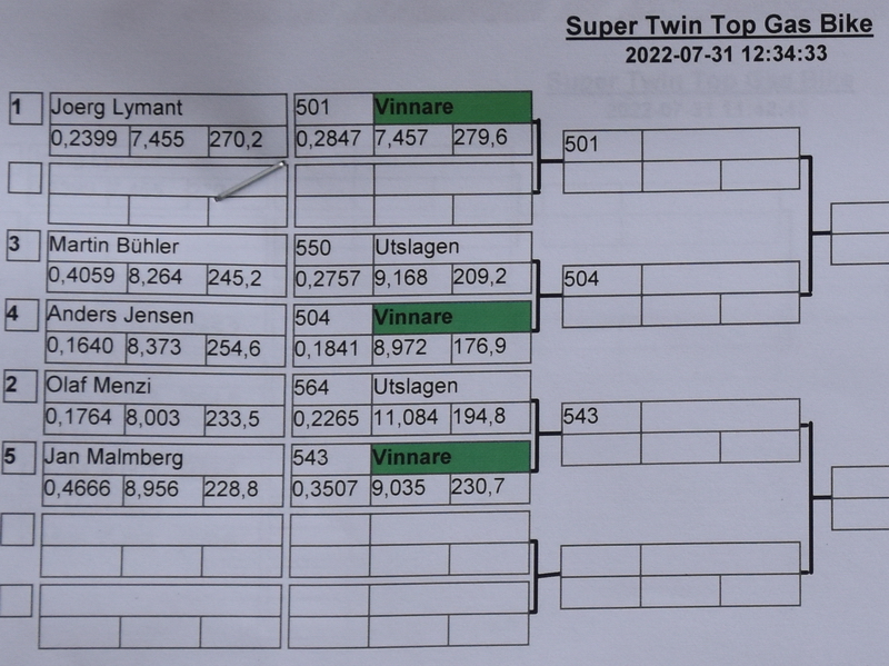 Per beat Mr Ström on his top fuel bike in a great side by side run, on reaction time, in the semis, and secured lane choise in the finals, where he beat Rikard Gustavsson in the same fashion. Not just on reaction, but also with a better E.T.