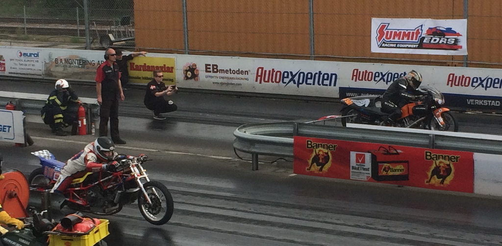 Malmberg had lane choice and his bike ran quicker (4.89) then Lymant's in the semi finals, but Jan was sleeping at the tree, and lost to Jörg Lymant because of a late reaction. Lymant ran 5.19 seconds and advanced to the finals.